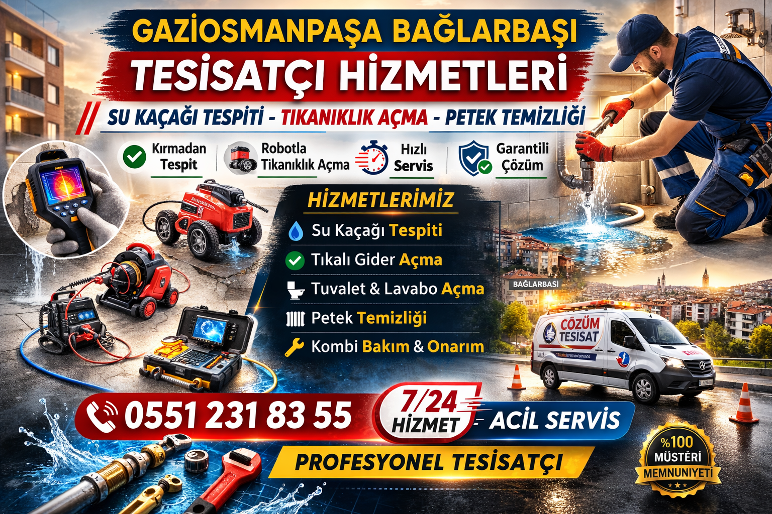 Gaziosmanpaşa bağlarbaşı tesisatçı ; kameralı su kaçağı tespiti , robotla tıkalı tuvalet , lavabo , pimaş açma ve petek temizliği içim bizi arayabilirsiniz. Çözüm Alt yapı tesisat Gop bölgesinde hizmet vermektedir. Sıradan tesisatçılarla bizi karıştırmayın biz teknolojiyi kullanarak size kolaylık sağlıyoruz.